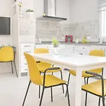 Pełnowymiarową kuchnię wyposażono w sprzęt AGD, w tym kuchenkę mikrofalową, lodówkę i przybory kuchenne.